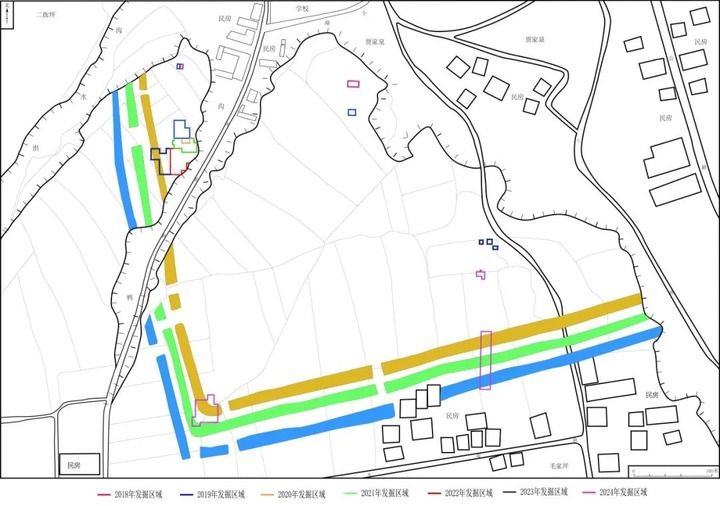 經(jīng)過(guò)2018年至2024年的7次考古發(fā)掘,千年塵封的馬家窯文化聚落緩緩浮現(xiàn)。總占地面積達(dá)近百萬(wàn)平方米的聚落由三重“圍壕”環(huán)繞,內(nèi)部房址密布,灰坑、陶窯、墓葬交錯(cuò)。令人訝異的是,三重平行分布的“圍壕”每條寬達(dá)9至11米,內(nèi)、外圈深約3至4米,且并非傳統(tǒng)的圓形或不規(guī)則形,而是規(guī)整的長(zhǎng)方形形制,與后世城墻“拐角”結(jié)構(gòu)十分相似。