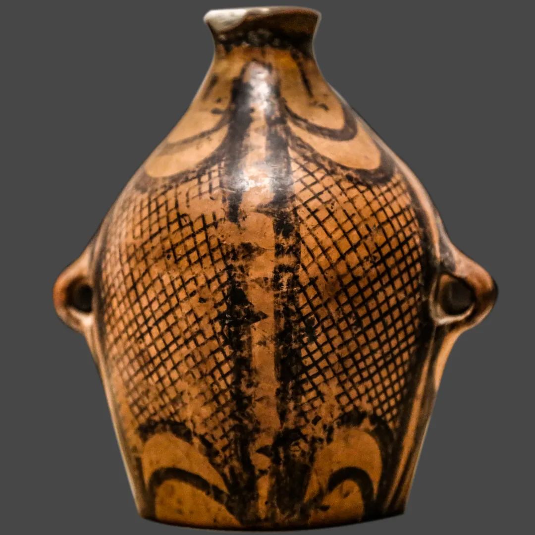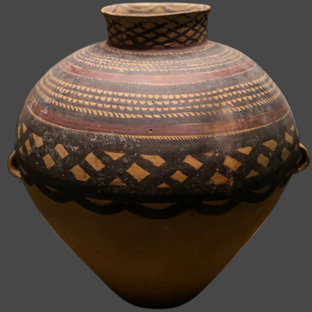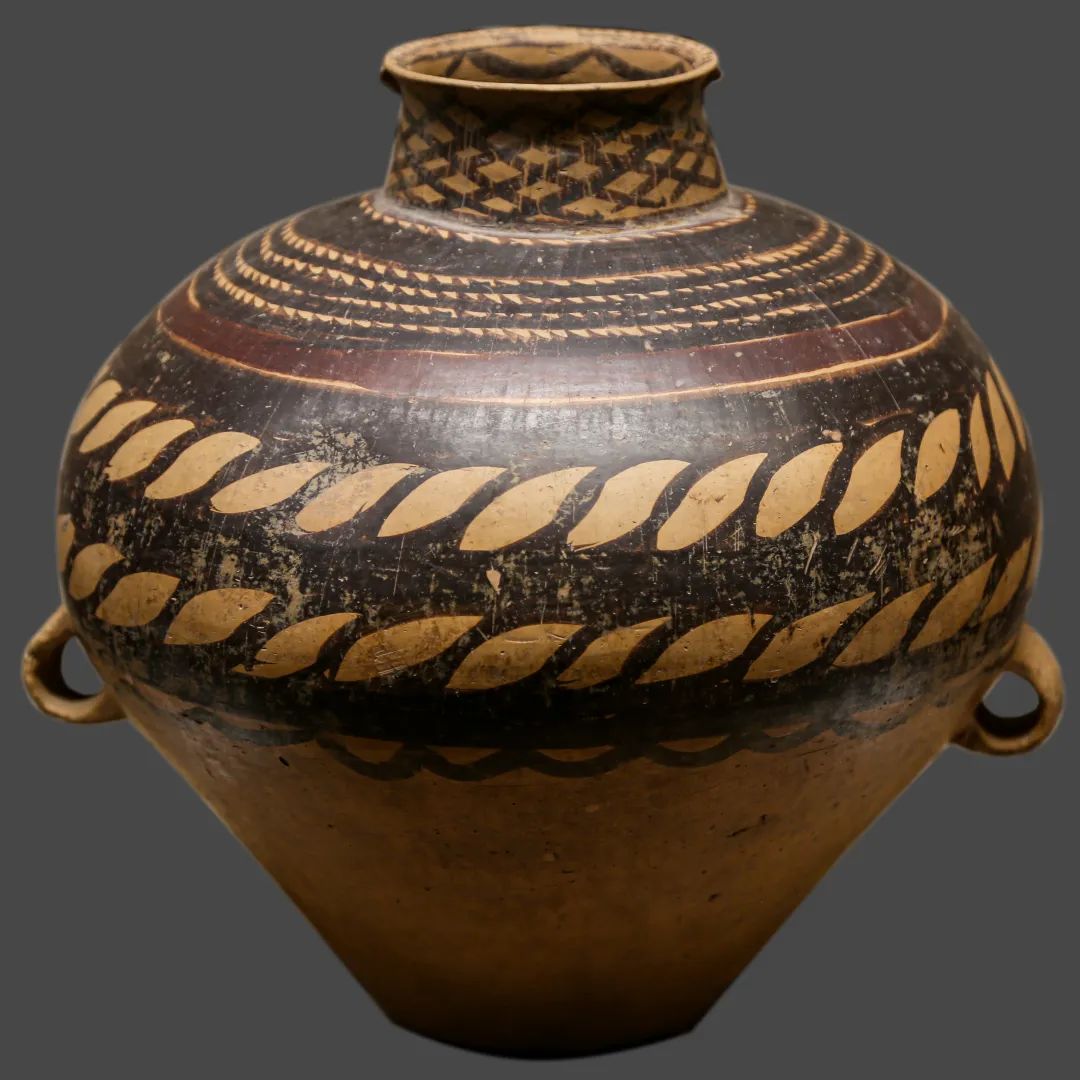 馬家窯文化如黃河上游的基因庫,約公元前3300年萌芽于甘肅定西臨洮,承仰韶文化西進之火種,以洮河為血脈、黃土為肌理,在旋轉的陶輪間淬煉出黑彩翻涌的史前藝術密碼,成為西北大地孕育新石器文明的第一縷熾熱胎動。
