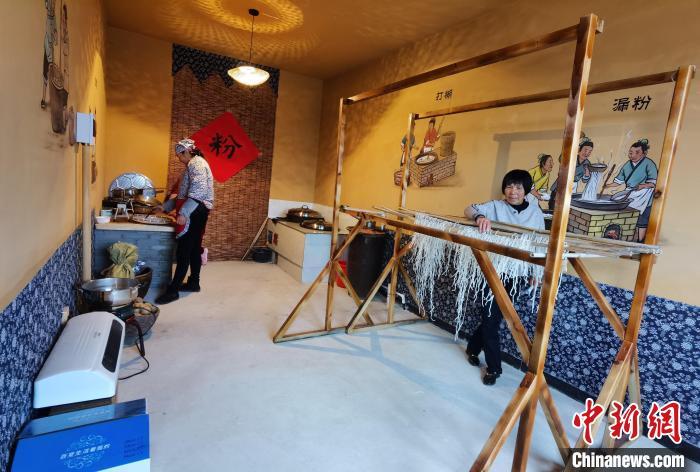 慶陽市合水縣太莪鄉黑木村村民在黑木崖生態康養農莊手工作坊晾曬粉條。(資料圖)安志鵬 攝