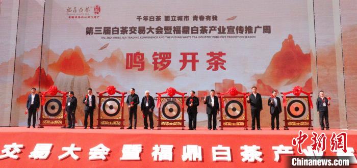 鳴鑼“開茶開市”,開啟第三屆白茶交易大會暨福鼎白茶產業宣傳推廣周序幕。 林榕生 攝