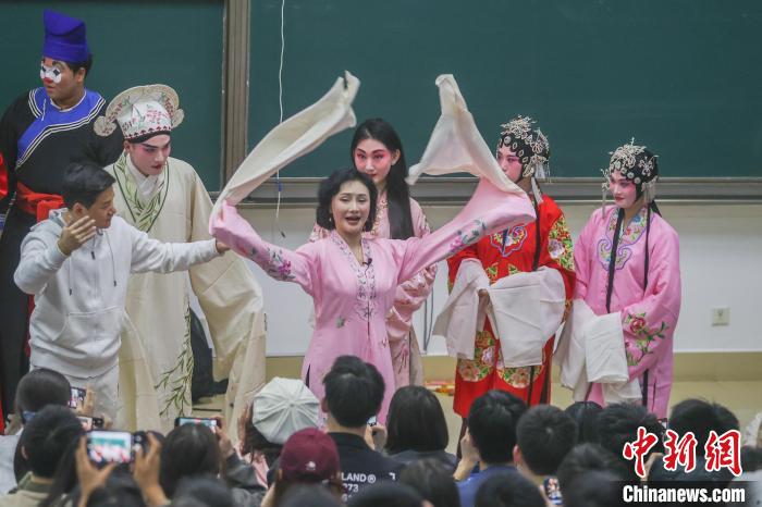 2024年3月,江西南昌,南昌大學贛劇藝術鑒賞課堂上,國家級非物質文化遺產代表性項目“贛劇”代表性傳承人陳俐正在給學生上課。(資料圖)劉力鑫 攝