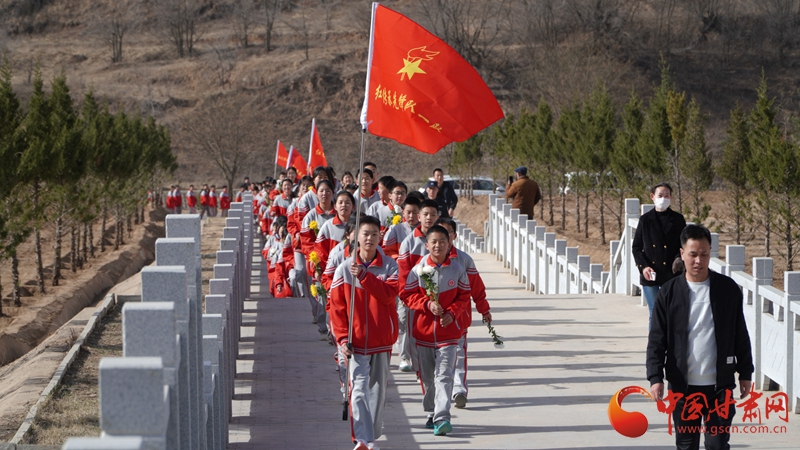 華池縣五所中學(xué)的800余名師生從華池縣列寧學(xué)校出發(fā),途經(jīng)閆洼子四十二烈士墓、劉懋功將軍墓、南梁革命烈士紀念碑、南梁紀念館、“兩點一存”主題廣場,徒步總路程7.2公里。