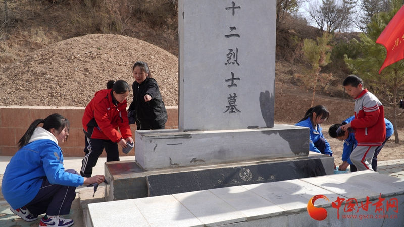 青山默默,浩氣長存……在南梁革命烈士紀念碑前,奏國歌、獻花籃、默哀、重溫入團誓詞,全體人員以崇敬之心表達對先烈的敬仰之情。在“紅飄帶”主題公園,師生們開展沉浸式戰(zhàn)爭體驗活動。在閆洼子四十二烈士墓、劉懋功將軍墓前,大家聆聽烈士事跡、默哀、清擦拭墓碑并獻花。