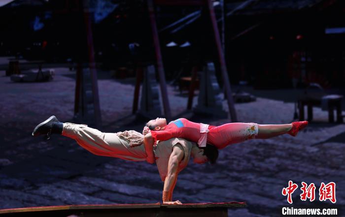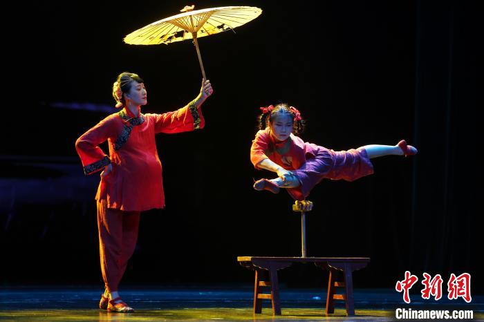 圖為飾演雜技班師娘的演員正在表演。中新社記者 劉占昆 攝