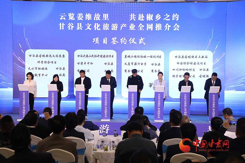 活動中,甘谷縣還為文化旅游傳播大使頒發了聘書,希望他們能夠發揮自身優勢,宣傳推介甘谷文旅。同時,大會還舉行了項目簽約儀式,共簽約4個項目,涉及田園綜合體建設、文旅農康研學綜合等領域。這些項目的成功簽約,為甘谷文旅產業發展注入了新的動力。