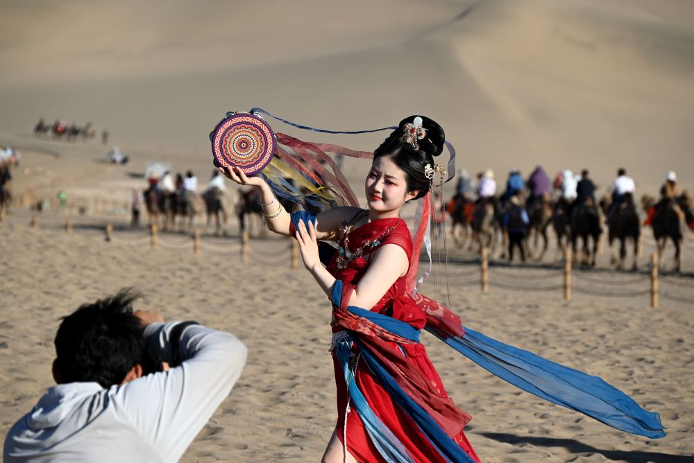 近年來,甘肅省敦煌市深入挖掘特色資源,推出旅游優惠政策措施、智能化體驗服務和低空飛行、旅拍等文旅項目產品,不斷豐富文旅業態,激發文旅消費新動能。據敦煌市文旅部門統計數據顯示,今年1至4月份,敦煌市旅游接待人數538.78萬人次,同比增長25.8%。