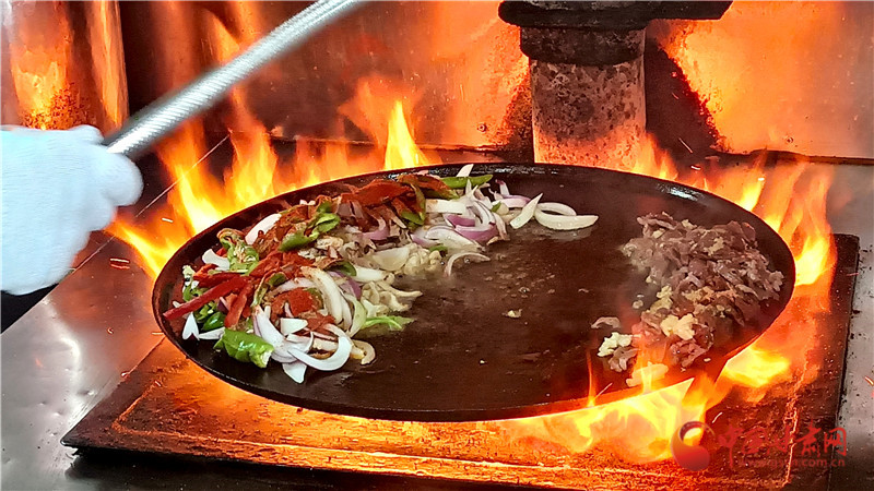 后來這種烹飪方式漸漸被當(dāng)?shù)匕傩諏W(xué)會并加以改良,以牛、羊雜為主要食材,放在鐵鏊子上炒制,山丹炒撥拉由此而來。