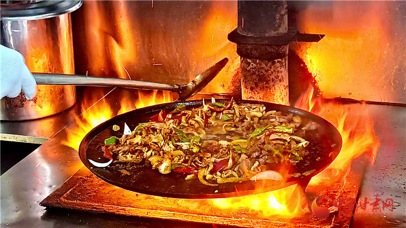 而隨著山丹炒撥拉名氣越來越大,這款圍爐而坐的美食成為越來越多游客的心頭好。王金秀說,以前她們擺地攤賣,雖然條件艱難,但是食客從來不挑剔。現(xiàn)在時代進步了,她也有了自己的示范店,在寬敞明亮的新店,變的是環(huán)境,不變的依然是滋啦冒油的熱情,和朋友圍坐的愜意。對于這種用餐氛圍感拉滿的美食,作為傳承人他們也非常在乎食客的體驗感,所以炒制過程全程開放,讓食客看著大火淬煉的美食一步步成型。