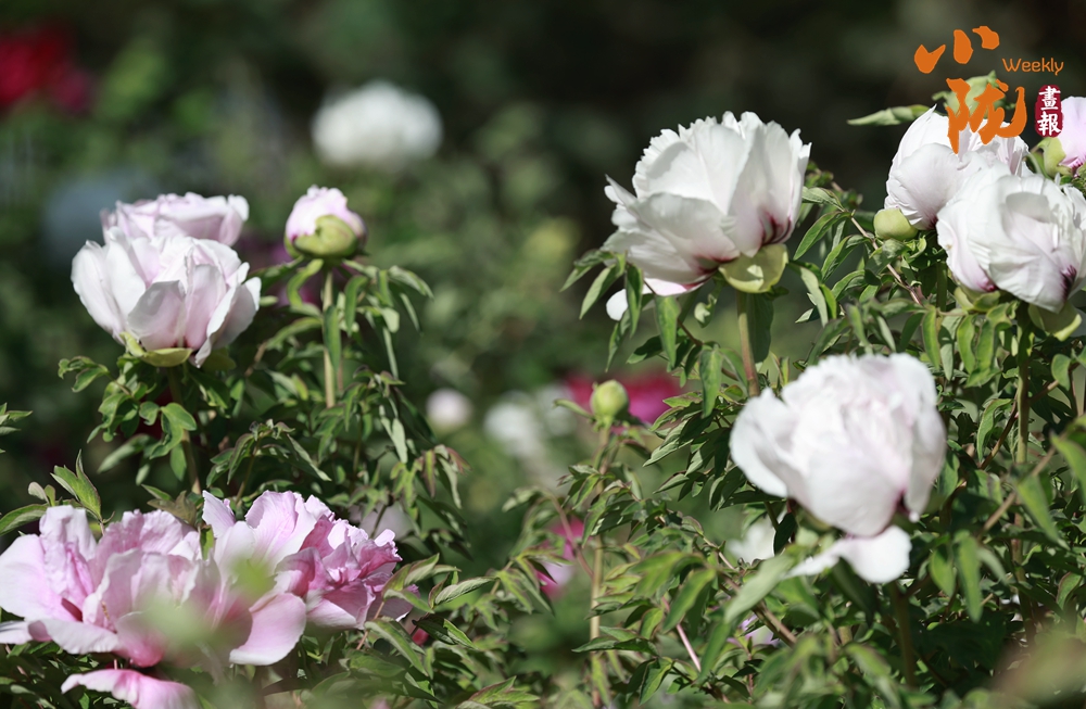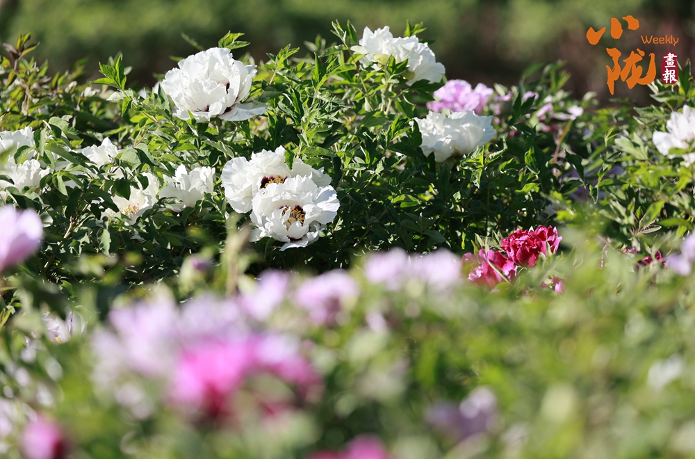 陽光照射下,牡丹粉的如霞,嬌艷柔美;白的像雪,純凈典雅,還有紫、黃等多種色彩相互交織,花朵碩大且花瓣層層疊疊,在微風中輕輕搖曳,散發出陣陣淡雅的清香,讓人陶醉其中。