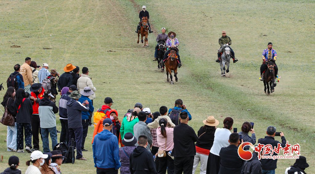當日,肅南裕固族自治縣“相約康樂草原 體驗民族風情”傳統文化展演活動拉開帷幕,來自肅南縣3個鄉鎮22個村的160多名騎手,自發匯聚于此,展開大馬賽、小馬賽、圓口賽、對牙賽等精彩賽事,將草原的速度與激情演繹得淋漓盡致,吸引了上海、廣東、安徽、福建等地的萬名游客觀賞賽馬和領略雪山、森林、草原為一體的祁連山美麗景色。
