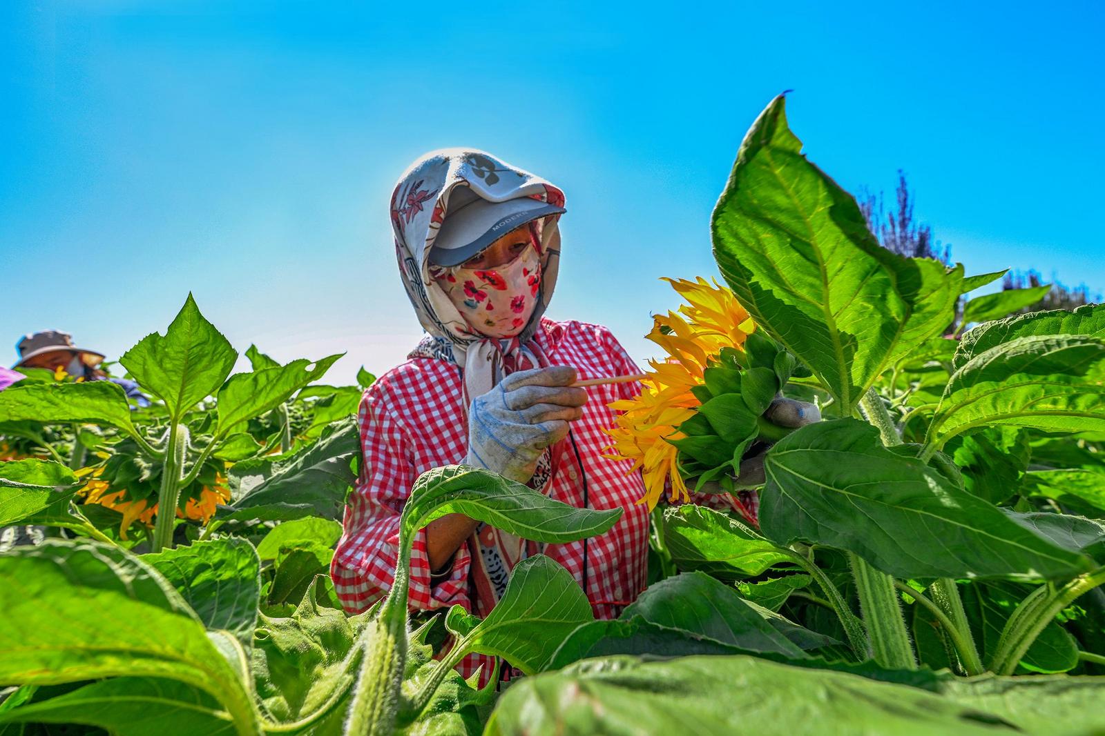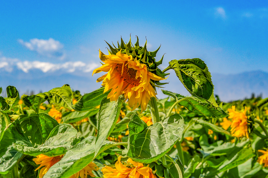 中國甘肅網7月14日訊 據嘉峪關日報報道(融媒體中心記者 李巍 攝)近日,嘉峪關市新城鎮野麻灣村“千畝”制種向日葵迎來盛花期,朵朵花盤匯聚成金色花海,放眼望去,與雪山相融、與藍天相接,如詩如畫,美不勝收。