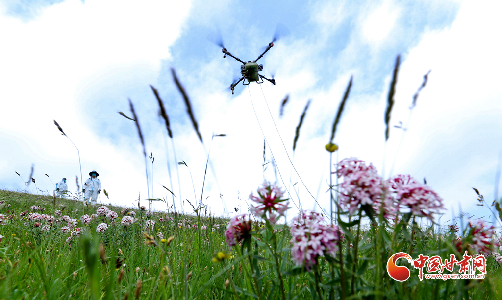 盛夏時節,位于張掖市肅南裕固族自治縣的皇城夏日塔拉草原、康樂賽汗塔拉草原,宛如一塊巨大的綠色絨毯鋪向天際,滿目翠綠,令人心醉神迷。然而,此時也正是草原上狼毒花毒害草盛放、蝗蟲繁殖的高峰期。連日來,肅南縣林草專業技術人員帶領2000多牧民,抓住毒害草開花、蝗蟲繁殖最快,也是清除滅殺的最佳時機,在“三北”工程六期160多萬畝廣袤的草原上,打響了以“蟲害防治+害草治理+噴施葉面+播撒草籽的”為核心的“三北”工程林草濕荒一體化保護修復攻堅戰。