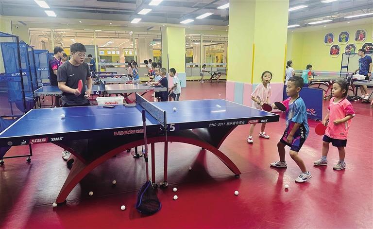 國芳G99一家乒乓球培訓機構內每張球桌前都有教練指導學員練習。“暑期班從7月10日持續至8月24日,針對零基礎學員推出一對一火箭課培訓。目前,教練時段全滿員,報班需要提前預約。”該機構負責人介紹,機構共推出苗子班、啟蒙營、基礎營等5種班型,按年齡和水平劃分,價位為1480元至2980元。4至6歲孩子可參加一對多的苗子班和啟蒙營,大一些的孩子則可參加基礎營、提高營進行對打訓練。