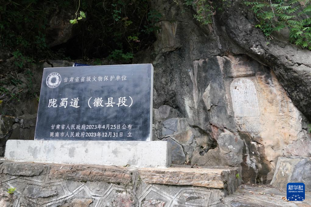 7月14日在甘肅省隴南市徽縣大河店鎮青泥村拍攝的青泥驛石碑。新華社記者 陳斌 攝