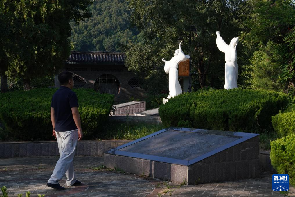 7月14日,在甘肅省隴南市徽縣大河店鎮青泥村,游客觀賞李白和杜甫的雕塑。新華社記者 馬寧 攝