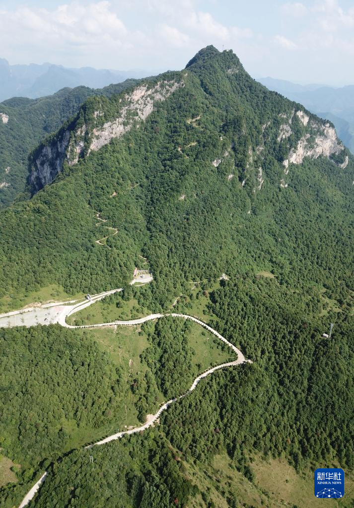 7月14日拍攝的青泥嶺主峰鐵山和鄉村道路(無人機照片)。新華社記者 馬寧 攝
