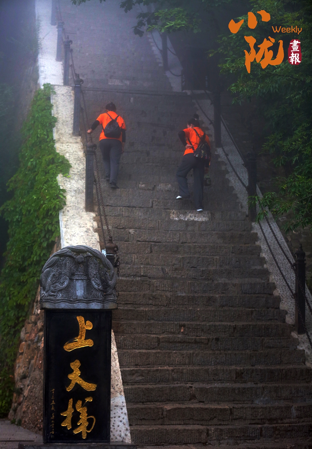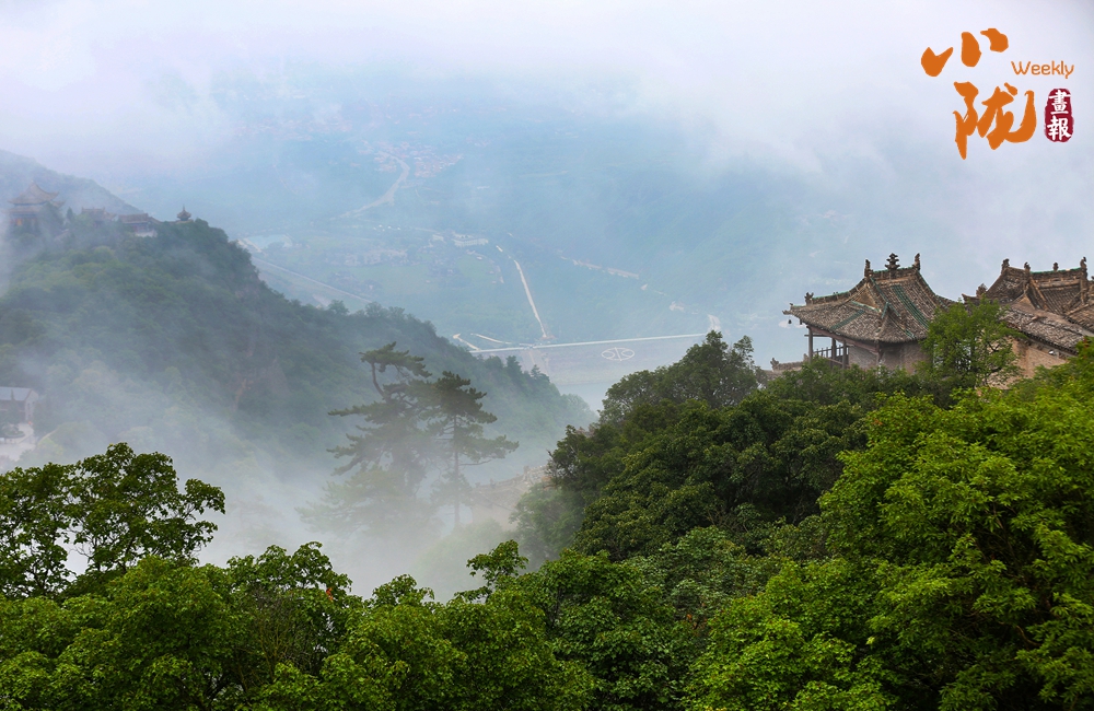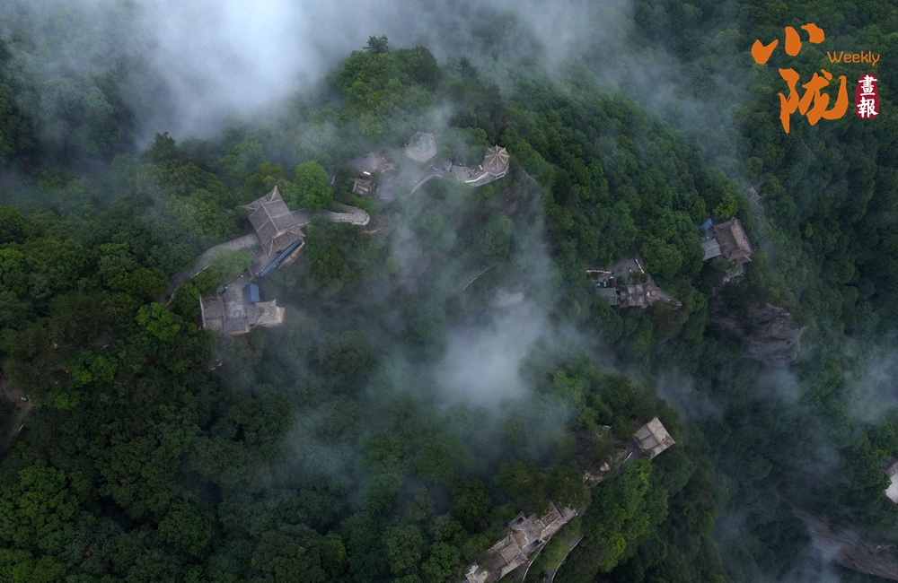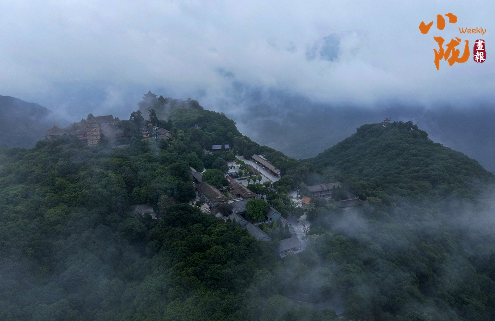 云霧繚繞,山水與寺廟隱現,營造出神秘且令人向往的視覺效果。站在半山腰,背靠懸崖,深邃不可見底,不禁生出“山登絕頂我為峰”的豪情。然而,世間萬物,瞬息萬變,是否成為峰巔之巔又何妨?