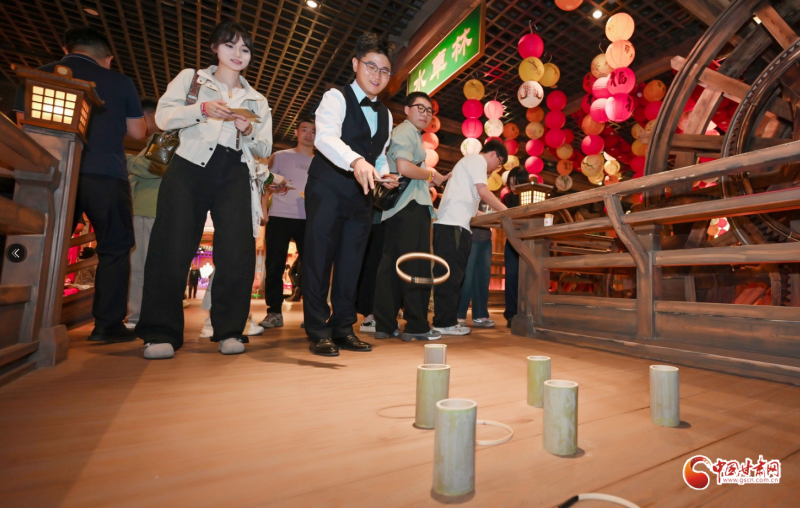 活動中,青年男女走進穿越之門,以啟緣照定格初見,持速配卡尋覓命定搭檔。詩板亭里飛花令對決顯才情,月老樹下合作套圈沖擊榜一,龍門客棧內演繹經典愛情電影橋段,良緣閣中以墨會友共書對聯,終局挑戰“你來比劃我來猜”更是妙趣橫生,眾人在解鎖甜蜜過節新方式的同時,感受中國傳統文化的魅力。