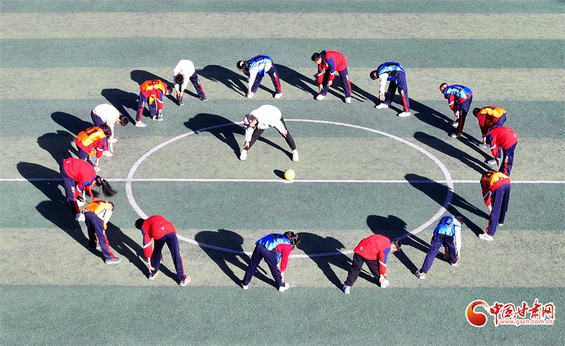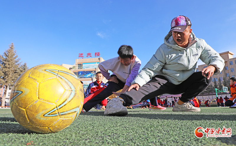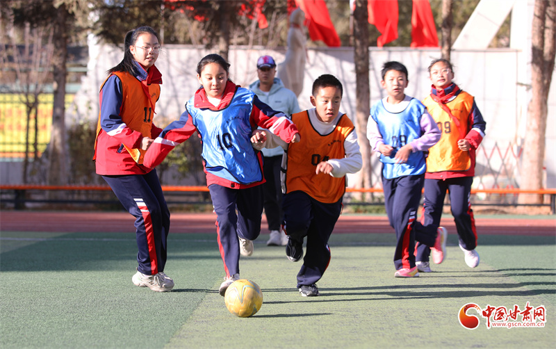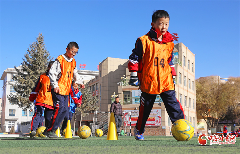 11月11日,在張掖市民樂縣洪水小學(xué)的足球場(chǎng)上,學(xué)生們?cè)谶M(jìn)行足球訓(xùn)練。
